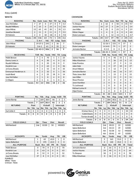 Alabama Spring Game Stats. April 17, 2022 5:17 pm ct. This spring game allowed for the public to see how the crimson tide football team currently looks, as fans.