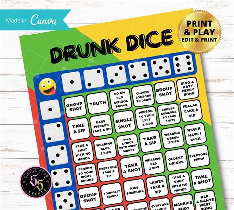 Drunk Dice & Drunk Rules Bundle Printable Party Games Virtual Etsy from www.etsy.com